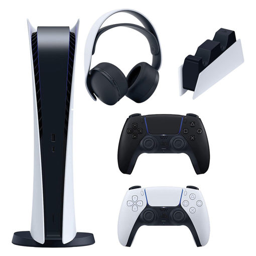 خرید اینترنتی مجموعه کنسول بازی سونی مدل PlayStation 5 Digital ظرفیت 825 گیگابایت به همراه هدست و پایه شارژر و دسته اضافی به همراه مقایسه، بررسی مشخصات و لیست قیمت امروز در فروشگاه اینترنتی فروشگاه اینترنتی پنینی99