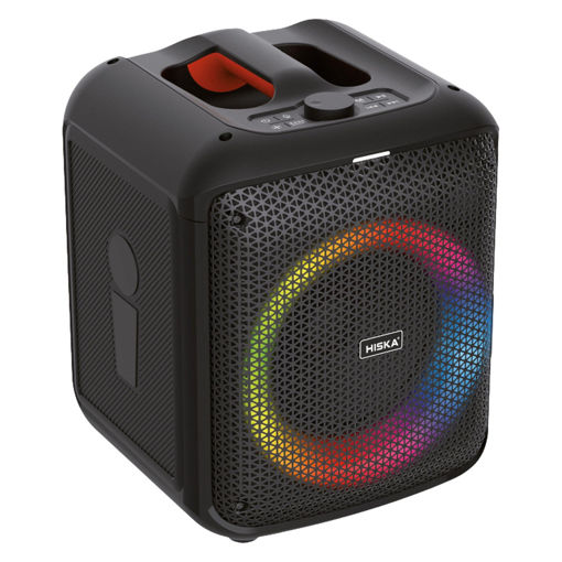 کوچک ترین ورژن اسپیکرهای پارتی باکس هیسکا مدل B175 است. هیسکا تلاش کرده است تا برای همه سلیقه ها یک محصول مناسب داشته باشد. این اسپیکر برای افرادی است که دوست دارند در جمع های کوچک و دوستانه به صورت جمعی موسیقی گوش دهند یا بتوانند با صدای بهتری فیلم تماشا کنند. علاوه بر این دوست ندارند که این اسپیکر فضای زیادی را اشغال کند. اسپیکر پارتی باکس B175 با وجود ابعاد کوچک نسبت به سایر اسپیکرها اکثر قابلیتهای مدلهای بزرگتر آن را دارا است. در بخش طراحی یک اسپیکر قابل حمل با طراحی جذاب را میتوانید مشاهده کنید. ابعاد این اسپیکر 329x283x264 میلیمتر و وزن آن نیز 4200 گرم است. بخش بالای آن نیز یک دسته محکم قرار دارد که با این ساختار به راحتی میتوانید آن را حمل کنید. بدنه این اسپیکر از استحکام خوبی برخوردار است. بنابراین مشکلی برای جابه جایی این اسپیکر نخواهید داشت. این اسپیکر قابلیت نورپردازی نیز دارد. با توجه به ابعاد، تعداد LED های کمتری روی آن قرار دارد اما قابلیت های همیشگی روی این اسپیکر موجود است. شما میتوانید با دکمه مخصوص نورپردازی که روی اسپیکر قرار دارد مدلهای مختلف نورپردازی را انتخاب کنید. با وجود این که پارتی باکس B175 کوچکترین مدل سری اسپیکرهای پارتی باکس است اما میتوانید توقع صدایی با وضوح بالا مانند سایر مدل های آن را داشته باشید. این اسپیکر قابلیت پخش صدای 40 واتی را دارد. برای مهمانیهای کوچک این اسپیکر کاملا مناسب است اما اگر بخواهید صدای بیشتری را در محیط احساس کنید قابلیت TWS به کمک شما میآید. با این قابلیت میتوانید از طریق کلید TWS روی خود اسپیکر قرار دارد میتوانید اسپیکر دوم را به صورت وایرلس متصل کند. یک دکمه کاربردی دیگری که روی سیستم قرار دارد دکمه BASS BOOST می باشد که حالتهای مختلف باس اسپیکر را میتوانید به وسیله آن تنظیم کند. قابلیت هیجان انگیزی که در این اسپیکر موجود است قابلیت نورپردازی آن است. LED های موجود روی اسپیکر هیسکا مدل B175 همزمان با ریتم آهنگ تغییر میکند و فضای جذاب تری را برای شما ایجاد میکند. که این نورپردازی را از طریق دکمه ای که روی دستگاه وجود دارد می توانید حالت های مختلفی را مشاهده کنید. و به وسیله باتری 6000 میلی آمپر ساعتی خود، با یکبار شارژکردن می توانید تا 4 ساعت بی وقفه به موسیقی مورد علاقه تان گوش دهید.